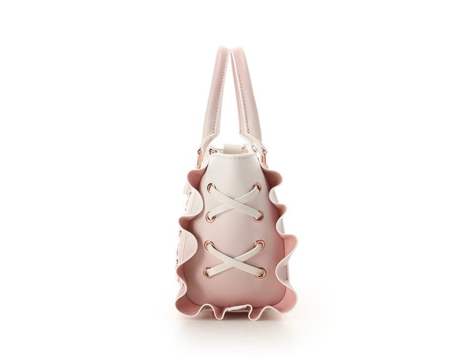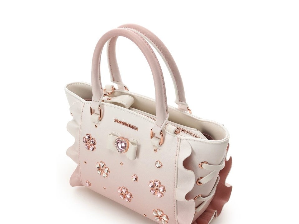 バッグ本体と持ち手がピンクのグラデーションになっており、