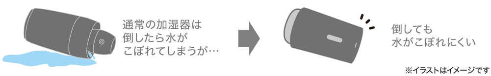 水がこぼれにくいコードレス加湿器は、お客様から「形がシンプルでお部屋になじむ」「コードが邪魔にならないから、場所を選ばずどこでも置けて便利」と大変ご好評いただき、発売から1か月余りで品薄となった人気アイテム。