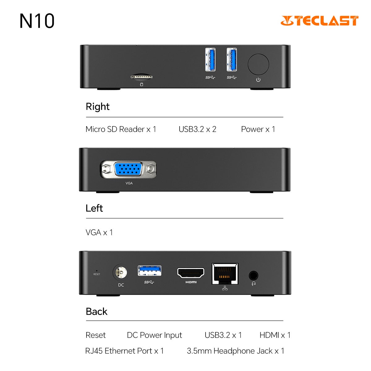0.36Lと超小型で250gと軽量なN10は、エネルギー効率に優れた2.6GHz Intel CPUを搭載しています。パッシブ冷却システムによる完全な静音性と、HDMI、USB3.2、イーサネット、VGAを含む多彩なポートを備えたN10は、パフォーマンスと汎用性の両方に優れ、あらゆる環境に最適です。