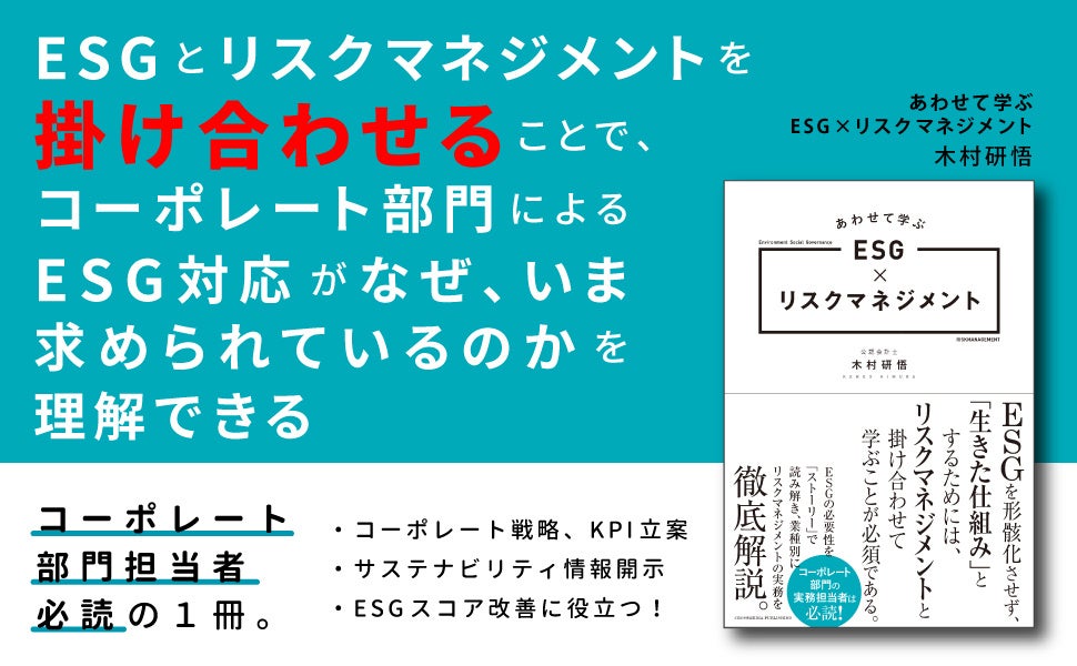これからの時代、成長志向の企業が避けては通れない「ESG」の実践に必要な考え方を、豊富な事例で基本から理解できる書籍『あわせて学ぶESG×リスクマネジメント』本日発売!