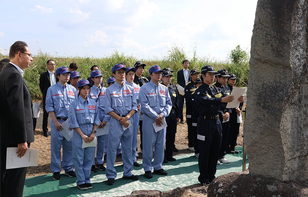 その後、同市職員代表が「我々は、『大塚切れ』を決して忘れることなく、心に刻み込み、大塚切れからの復旧やその後の水防対策に取り組まれた先人たちの並々ならぬご労苦に感謝するとともに、この大塚切れを後世に伝え、市民の安全・安心を守り続けて行くことを、改めてここに誓います」と決意を述べ、参加者は水害から市民の生命・財産を守り続ける決意を再確認しました。