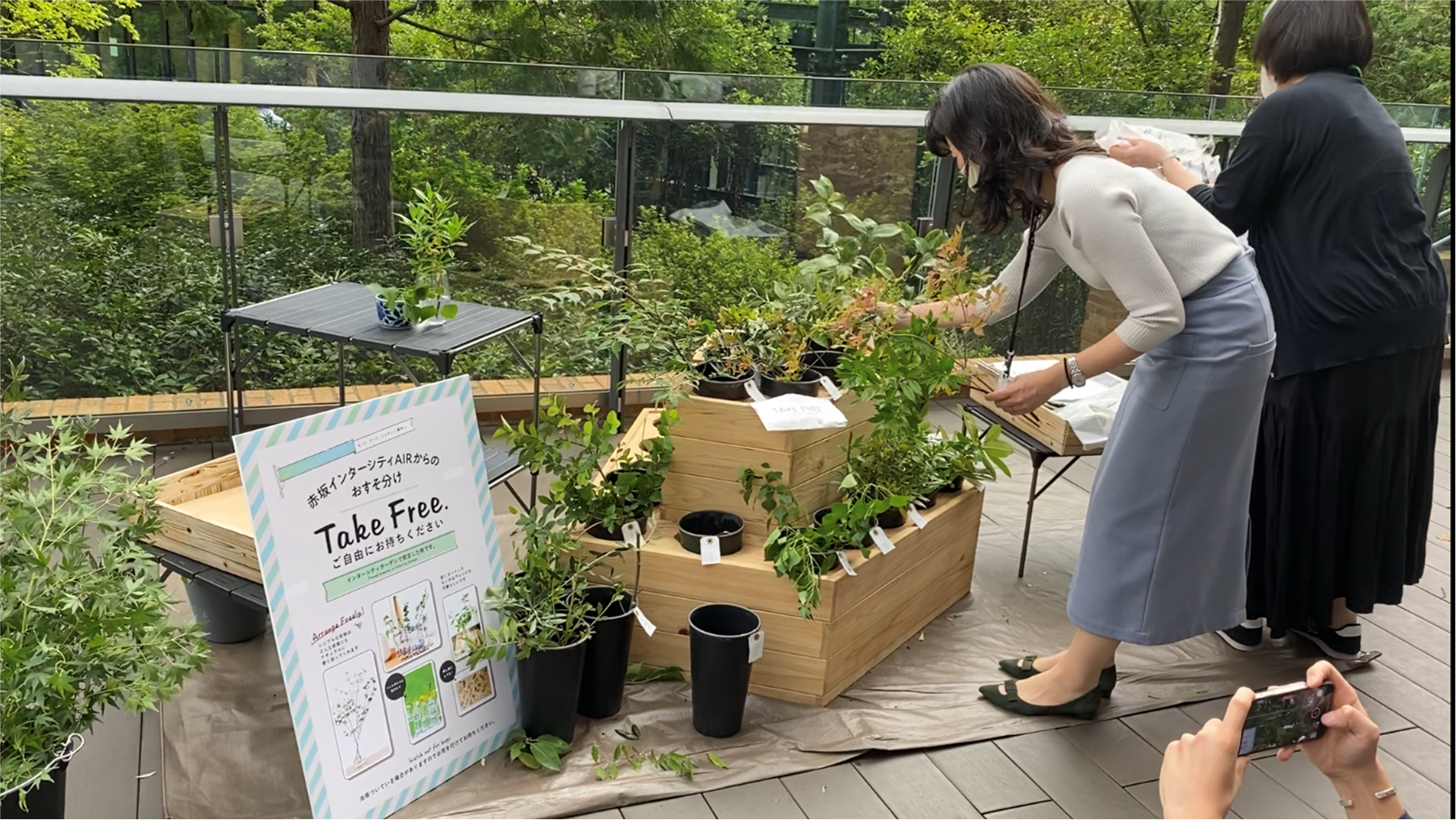 - 剪定枝の配布:施設内で剪定された枝を毎月地域住民やオフィスワーカーに配布し、家庭での再利用を促進。