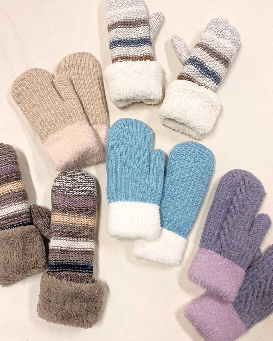冬の必須アイテムであるマフラー&手袋も登場。マフラーはワントーンのシンプルデザインでガーリーコーデに合わせやすいピンク・ブルーに加え、大人っぽいベージュ系カラーやシックなブラック系カラーを展開します。手袋は指先までしっかりと温まるミトンタイプのラインナップです。