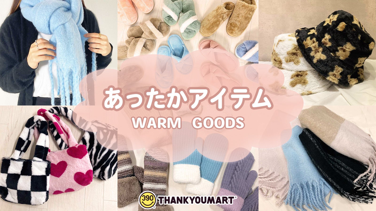 390円(税込429円)を中心としたかわいいアイテムが集まるショップ「サンキューマート」を運営するエルソニック株式会社は、ますます寒くなるこれからの季節にピッタリなあったかアイテムを全国のサンキューマート店舗で12月上旬より入荷順次販売開始いたします。今冬マストの節電対策にもなり、ワンアイテムでコーデのトレンド感を上げるルーム&ファッションアイテムです。