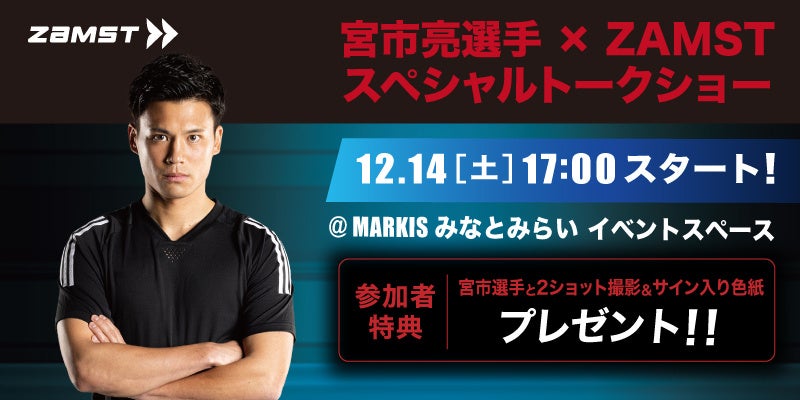 スポーツ向けサポート・ケア製品ブランド「ZAMST(ザムスト)」を展開する、日本シグマックス株式会社(本社:東京都新宿区、代表取締役社長:鈴木 洋輔)は、契約アスリートである宮市亮選手を招いてのトークイベントを12月14日(土)に開催いたします。