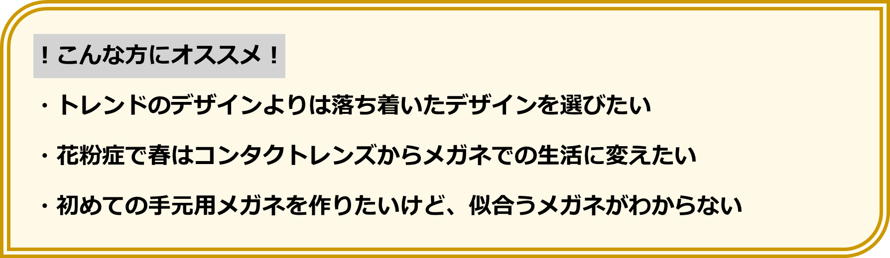 コツを覚えて、ご自身にぴったりなメガネ探しをお楽しみください。