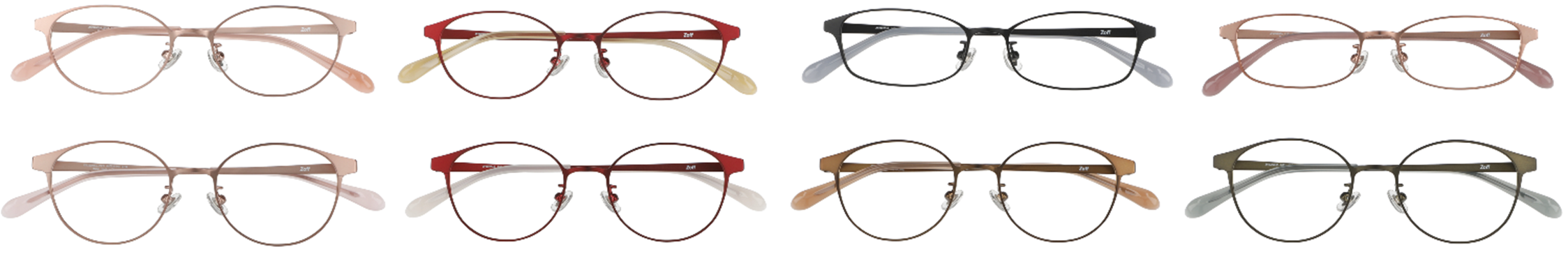 METAL seriesは女性の顔幅に合わせた小さめサイズのベーシックなフロントシェイプに、血色良く見せてくれるカラーリングを合わせた優しい曲線のデザイン。メガネを初めてかけられる方、コンタクトレンズと併用したい方、手元用メガネとしてもおすすめです。