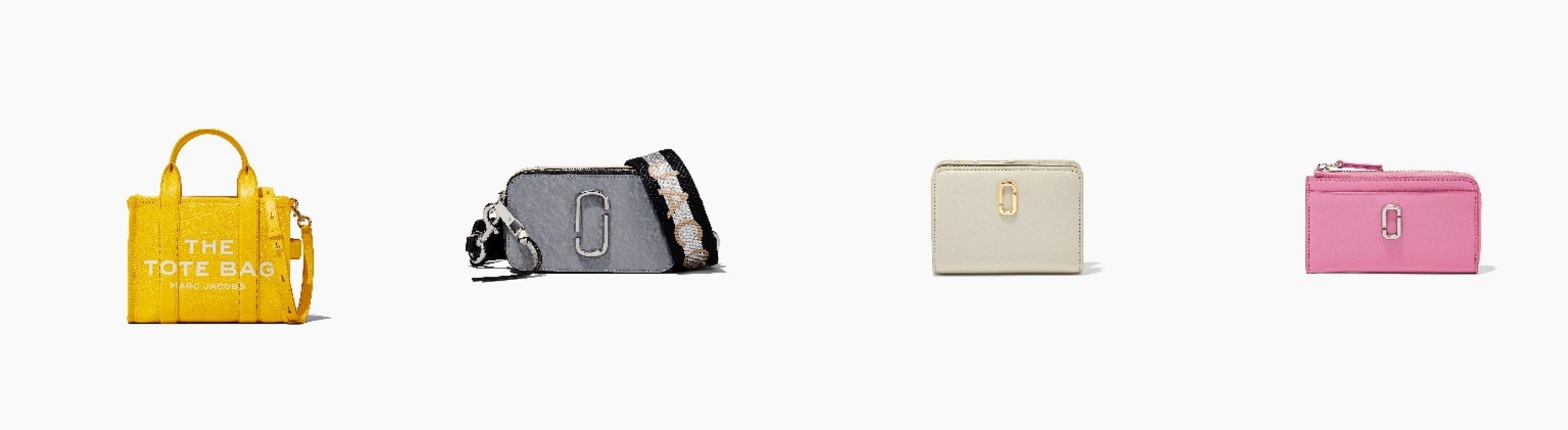 左から ザ レザー トート バッグ ミニ 62,700円/ ザ カラーブロック スナップショット 51,700円/ ザ レザー J マーク ミニ コンパクト ウォレット 23,100円/ ザ レザー J マーク トップ ジップ マルチ ウォレット 19,800円