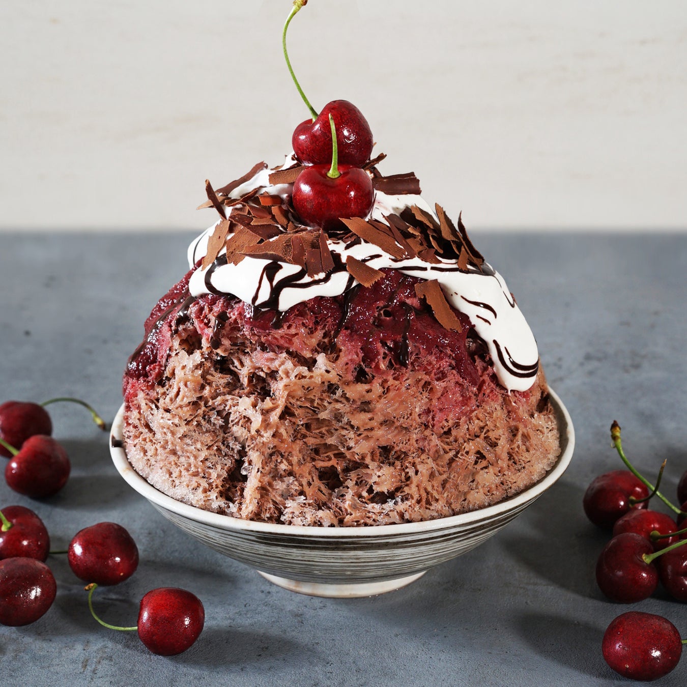 旬のアメリカンチェリーとチョコレートを贅沢に使用したかき氷。