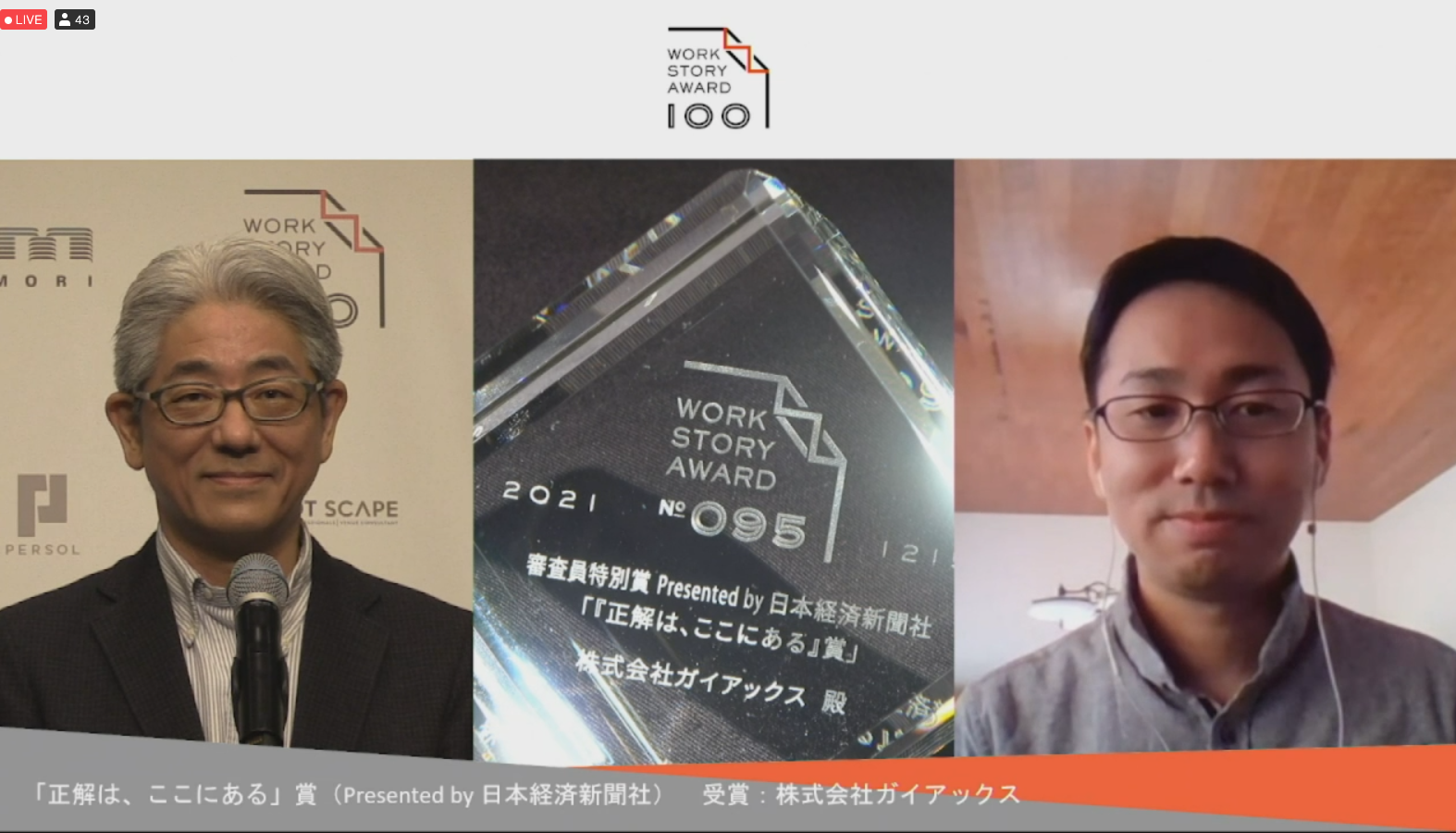 株式会社ガイアックス(本社:東京都千代田区、代表執行役社長:上田 祐司、証券コード:3775、以下 ガイアックス)は、本日、"働き方を選択できる社会づくり"の実現を目指す一般社団法人at Will Workが開催するアワードプログラム『Work Story Award 2021』にて、2つの取り組みそれぞれがグループ審査員特別賞を受賞しました。