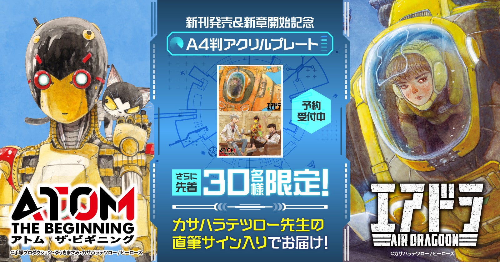 先着30名様限定!『アトム ザ・ビギニング』×『エアドラ』カサハラテツロー先生直筆サイン入りA4判アクリルプレート付きセット予約受付開始【漫画全巻ドットコム】