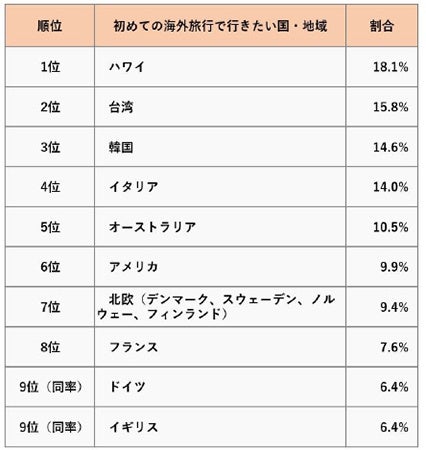 初めての海外旅行で行きたい国・地域ランキング ~アンケート結果を阪急交通社が公開~