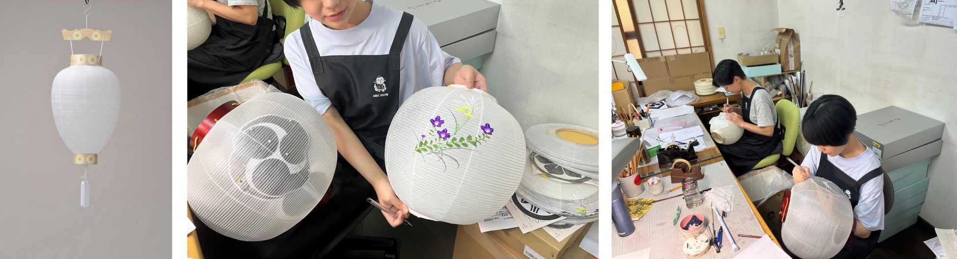 大正10年(1921年)創業、100年以上の歴史を持つ岐阜提灯の老舗です。継承される伝統の技と美にこだわり、 製品の企画から製造・販売まで手がけています。家紋の入った盆提灯や雛飾りの雪洞、神社仏閣の提灯などの伝統工芸品だけでなく、伝統にとらわれない自由な発想で、現代の生活に溶け込む新しい提灯を提案しています。
