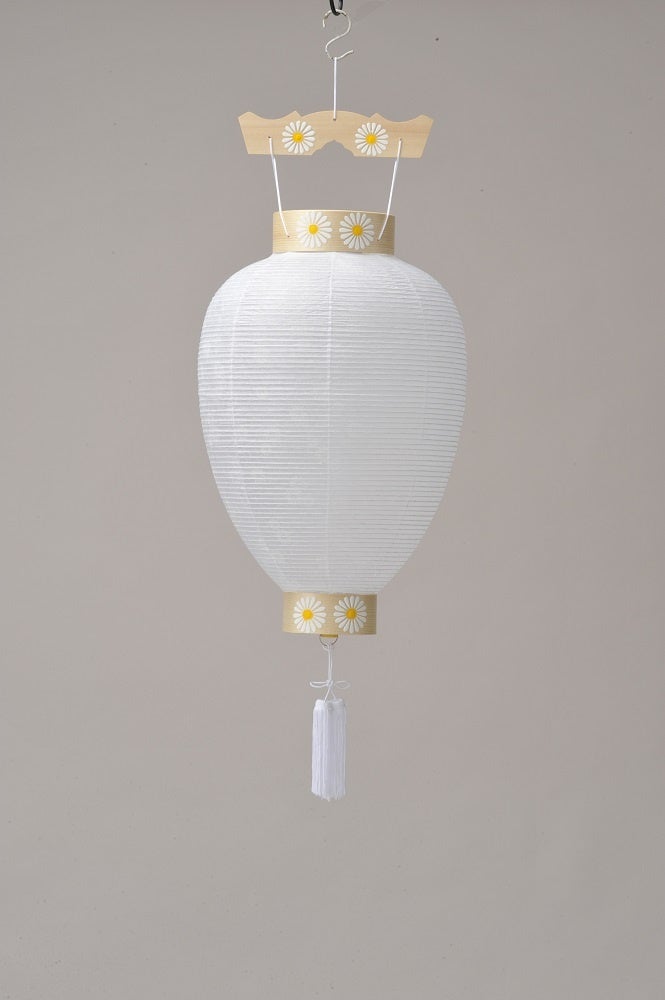 岐阜提灯の特徴は、美濃地方で作られる良質の美濃紙や竹を材料に、秋の花々や花鳥、風景などの細やかな絵柄が描かれていることです。材料となる美濃紙は、薄くて丈夫なことで昔から知られており、美濃紙それ自体も、国の伝統工芸品の指定を受けています。竹ひごはあくまで細く、紙はあくまで薄く、繊細で優美な形と絵柄があいまって、見る人に上品で清楚な印象を与える提灯です。