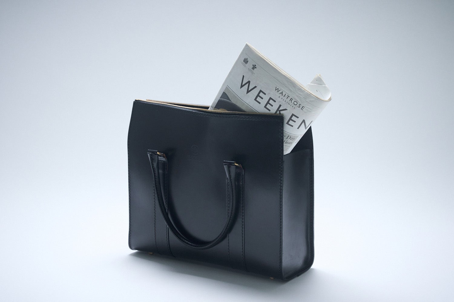ブリーフケースの堅牢さとトートバッグの気軽さ。一見相反する2つの長所を見事に両立させたレザーバッグです。バッグ上部のファスナーを閉めれば大切な書類やPCを守るビジネス仕様のブリーフケースに、開ければ開口部から中身が出し入れできるオフ兼用のトートバッグに。また、シンプルなデザインながらもブライドルレザーを贅沢に使っているため、使い込むほどに増す艶と味わいを堪能できます。