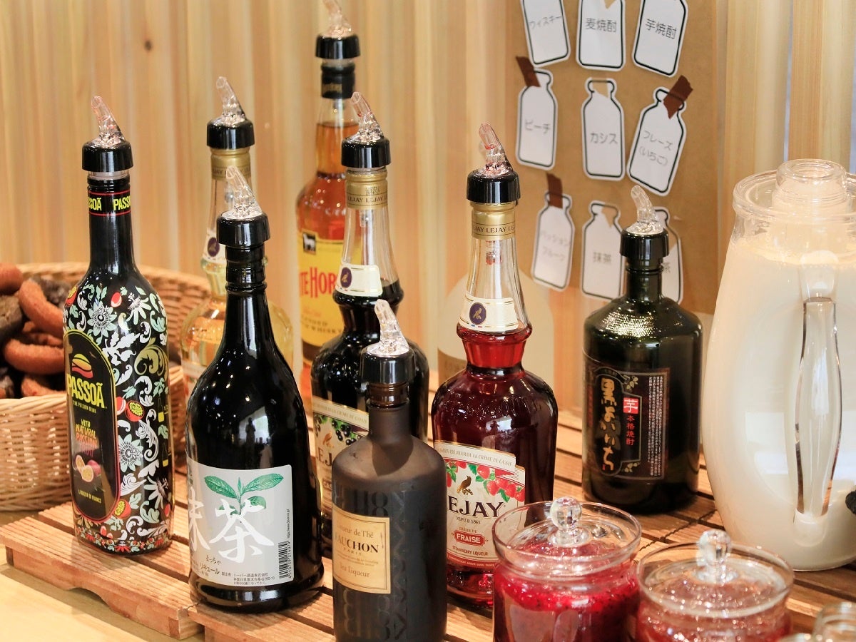 (コーヒー、紅茶、ソフトドリンク、お茶菓子、スパークリングワイン、ウイスキー、リキュール、焼酎など)