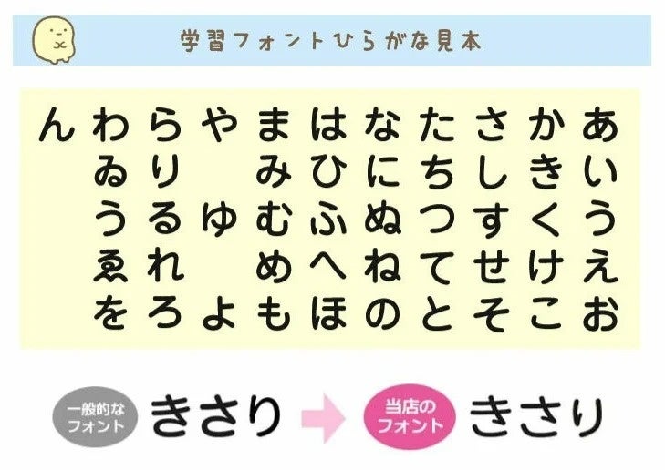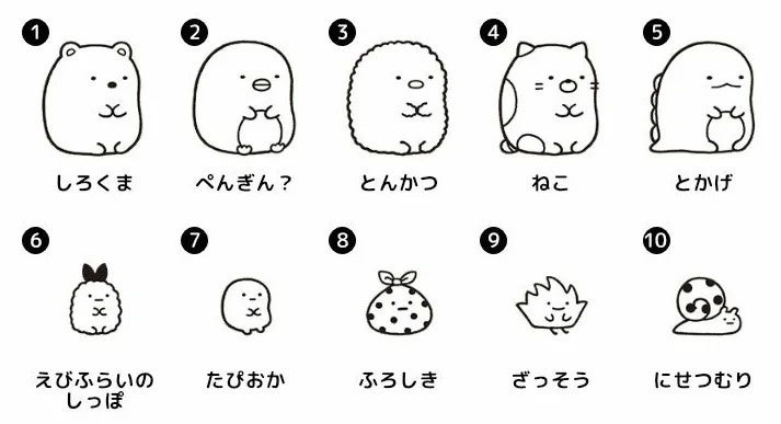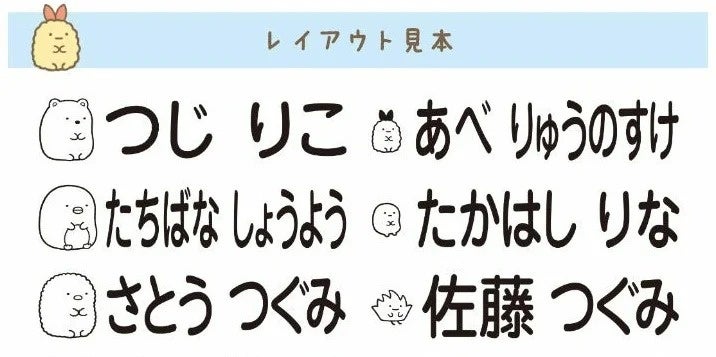 文字を読めない子どものために、イラスト入りのお名前スタンプは作れないかという声から企画。しろくま、ぺんぎん?、とんかつ、ねこ、とかげ、えびふらいのしっぽなど、かわいい10匹のすみっコが選べます。