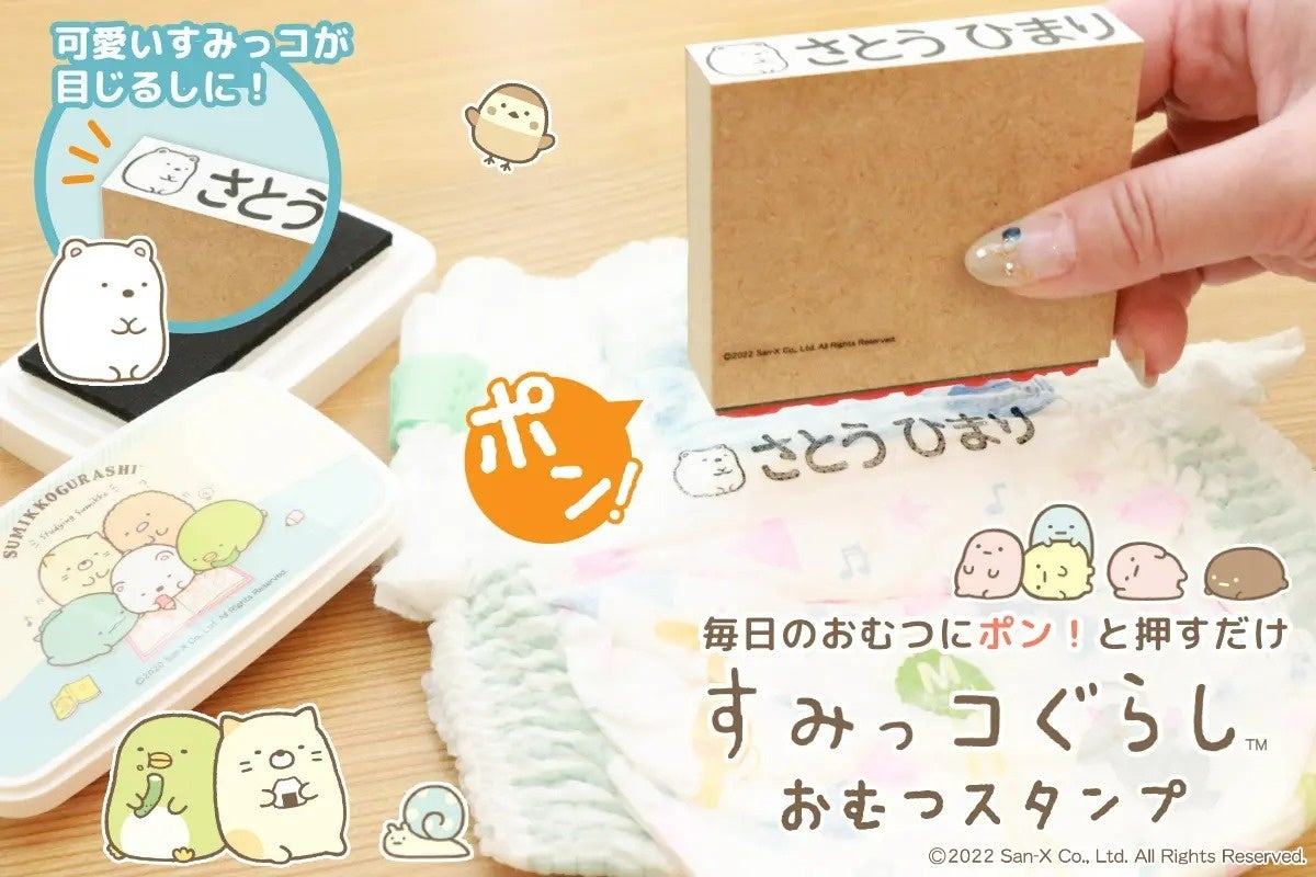 毎日のおむつへのお名前つけに!かわいいすみっコが目じるしになる、大きめサイズのお名前スタンプ「すみっコぐらし おむつスタンプ」が本店サイトに登場。