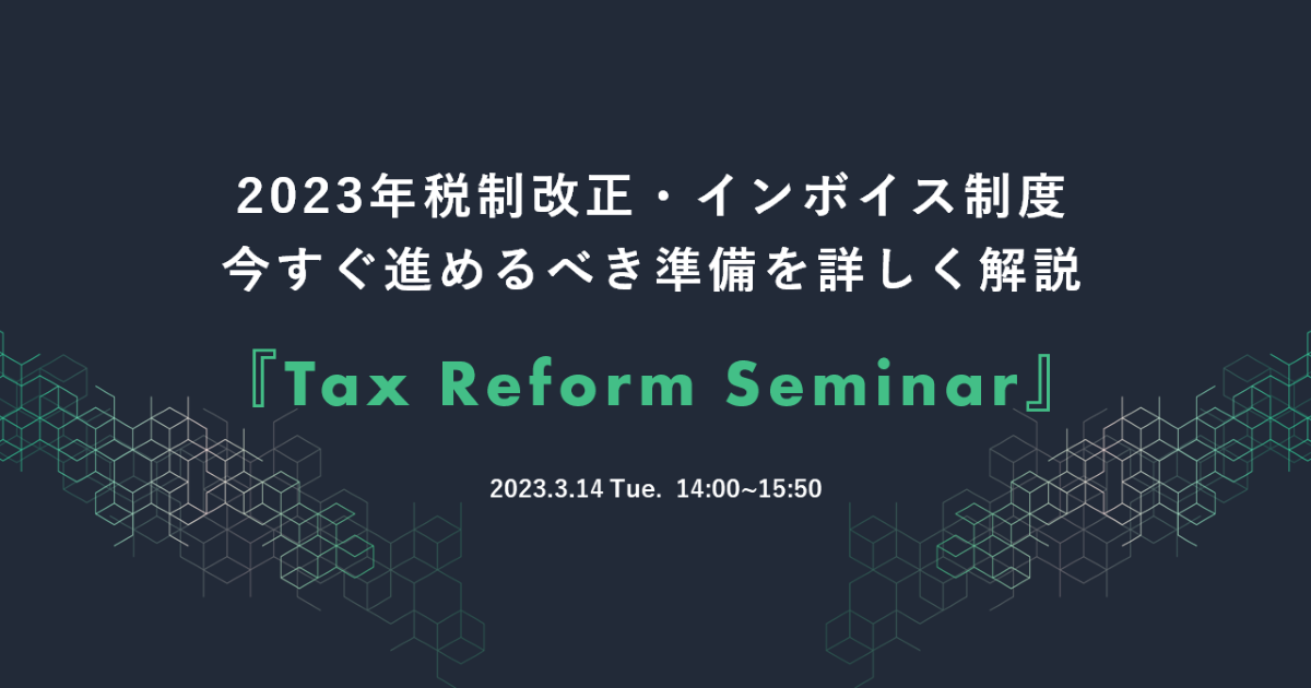 財務省担当官、公認会計士・税理士が解説 2023年税制改正、インボイス制度について学ぶ『Tax Reform Seminar』を3月14日(火)に開催