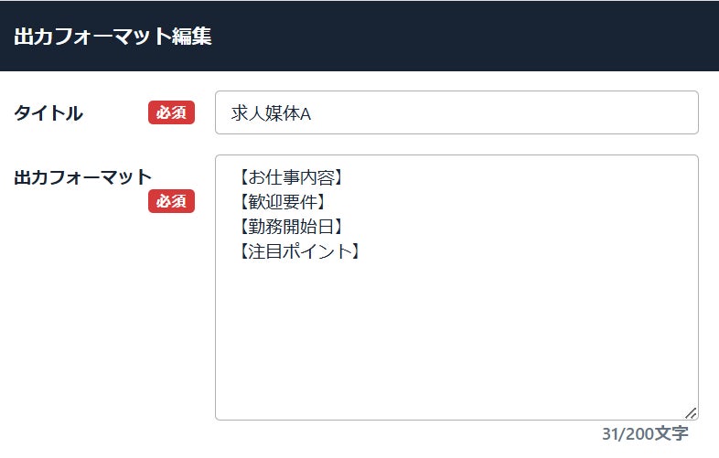 ANDASUでの求人原稿生成時やリライト時に出力する文章のフォーマットを指定出来る機能です。