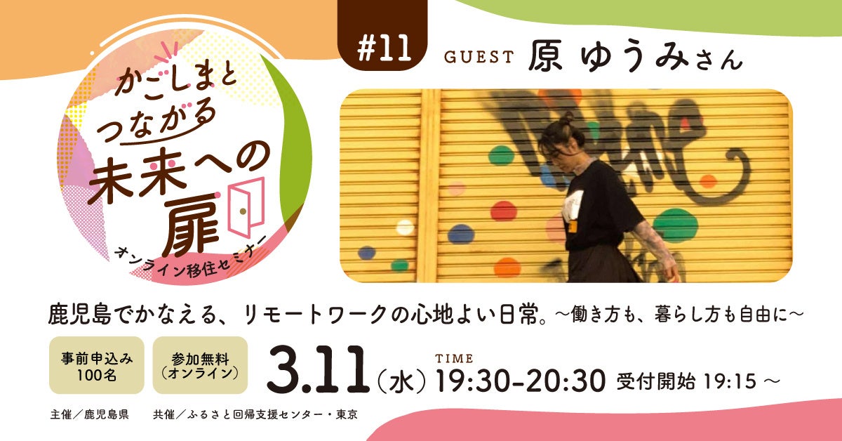 株式会社みらいワークス(本社:東京都港区、代表取締役社長 岡本 祥治)は、2026年3月11日(水)鹿児島県から受託した事業の一環で、オンライン移住セミナーを開催します。