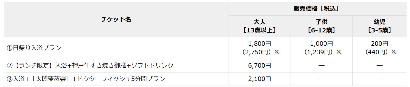 ※()内は「有馬温泉 太閤の湯」の通常の入館料(平日)