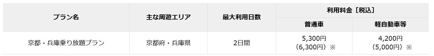 ※()内は、現在販売中の関西エリア周遊ドライブパス(京都・兵庫乗り放題プラン)の料金