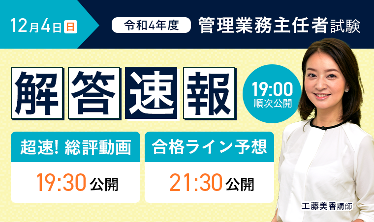 2022年管理業務主任者試験【解答速報・総評動画】を試験当日に公開いたします!