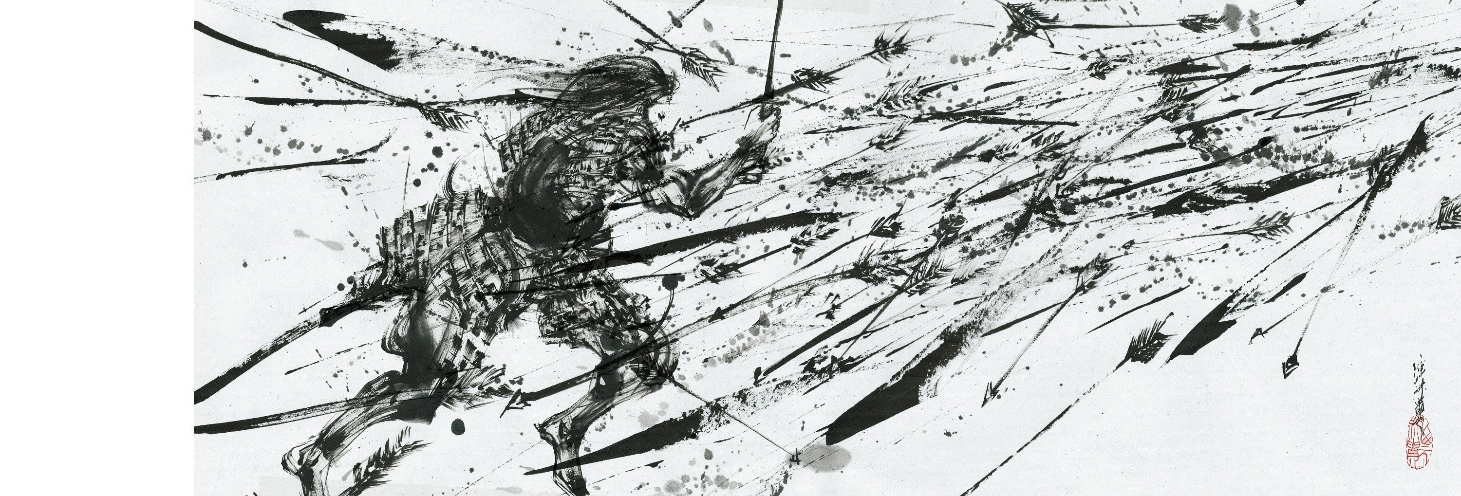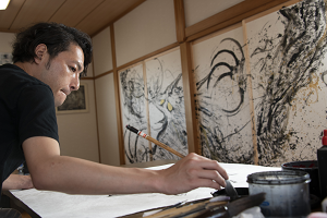 世界的な注目を集める、日本を代表する墨絵、陶墨画アーティスト。龍や侍などの古典的なモチーフから、スポーツ選手やミュージシャンなどの斬新なモチーフを描く。伝統的な技法に捕われず、大胆さと繊細さを持ち合わせたタッチで「躍動感」を追求した作品を描く。「陶墨画」は墨絵のごとく陶土の板に釉薬で描き、高温で焼き上げられ、その躍動感が千年褪せない作品となる。