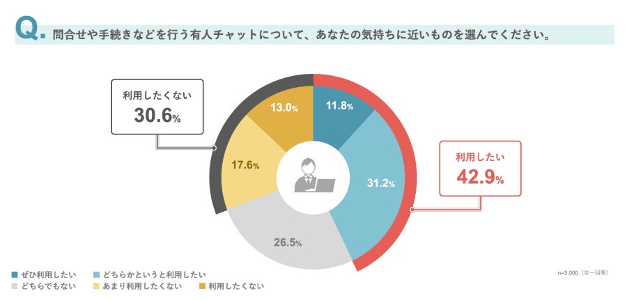 有人チャットの支持が4割超で優勢、特に中高年層ではチャットボットと有人チャットの利用意向の差が拡大
