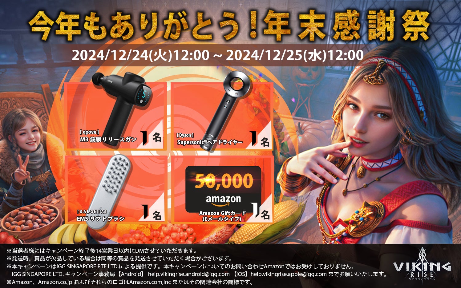 ヴァイキングライズ、公式Xにて『今年もありがとう!年末感謝祭』を開催!抽選で豪華賞品が当たる!