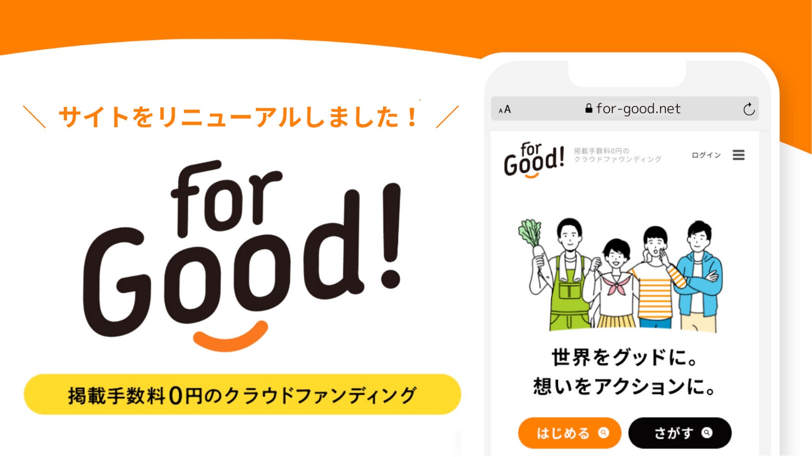 【社会課題解決を促進する】掲載手数料0円のクラウドファンディングFor Goodが、サービスサイトをリニューアル