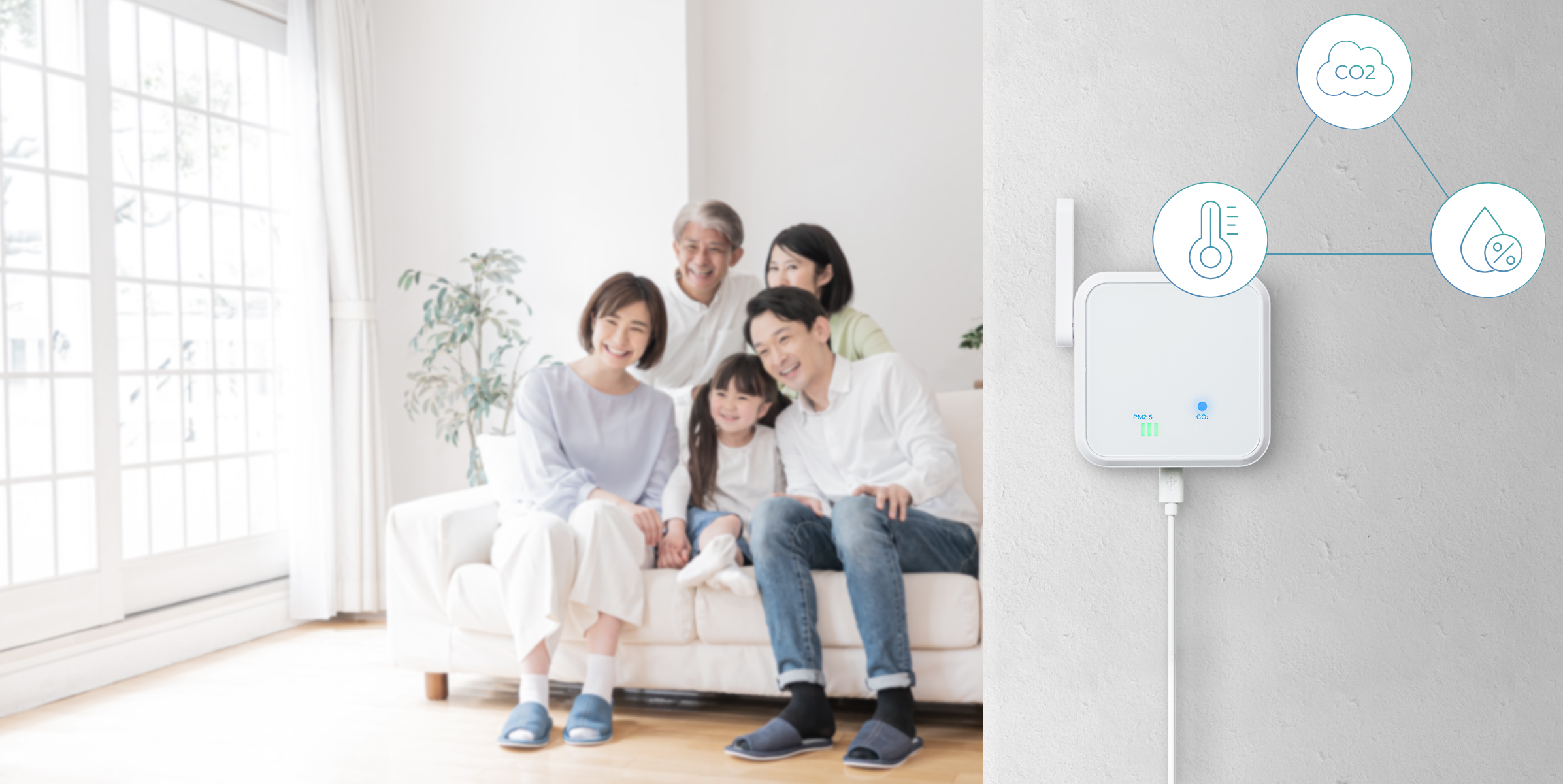 CO2濃度の計測ができるラトックシステムのBluetooth®環境センサー「RS-BTEVS1」と連携すれば、空気が汚れているときは換気機能のあるエアコンやサーキュレーターをつけるなど、環境に合わせた快適な空間づくりを自動化することができます。