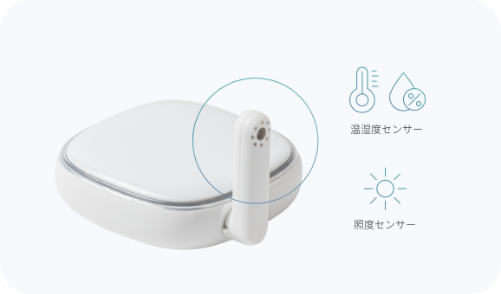 温湿度センサーと照度センサーを搭載しているため、暗くなったら照明をオンにしたり、室温にあわせたシーン設定をすることができます。各センサーは、外部に引き出すためのアームを設け、本体内部の熱の影響を受けにくい設計のため、精度の高い測定を実現しています。