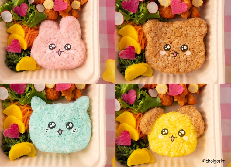 ヤンニョムチキン・プルコギ・フェビビンバから好きなメインを1種、好きなごはんの形をうさゴシム・くまゴシム・ねこゴシム・いぬゴシムより選べます。