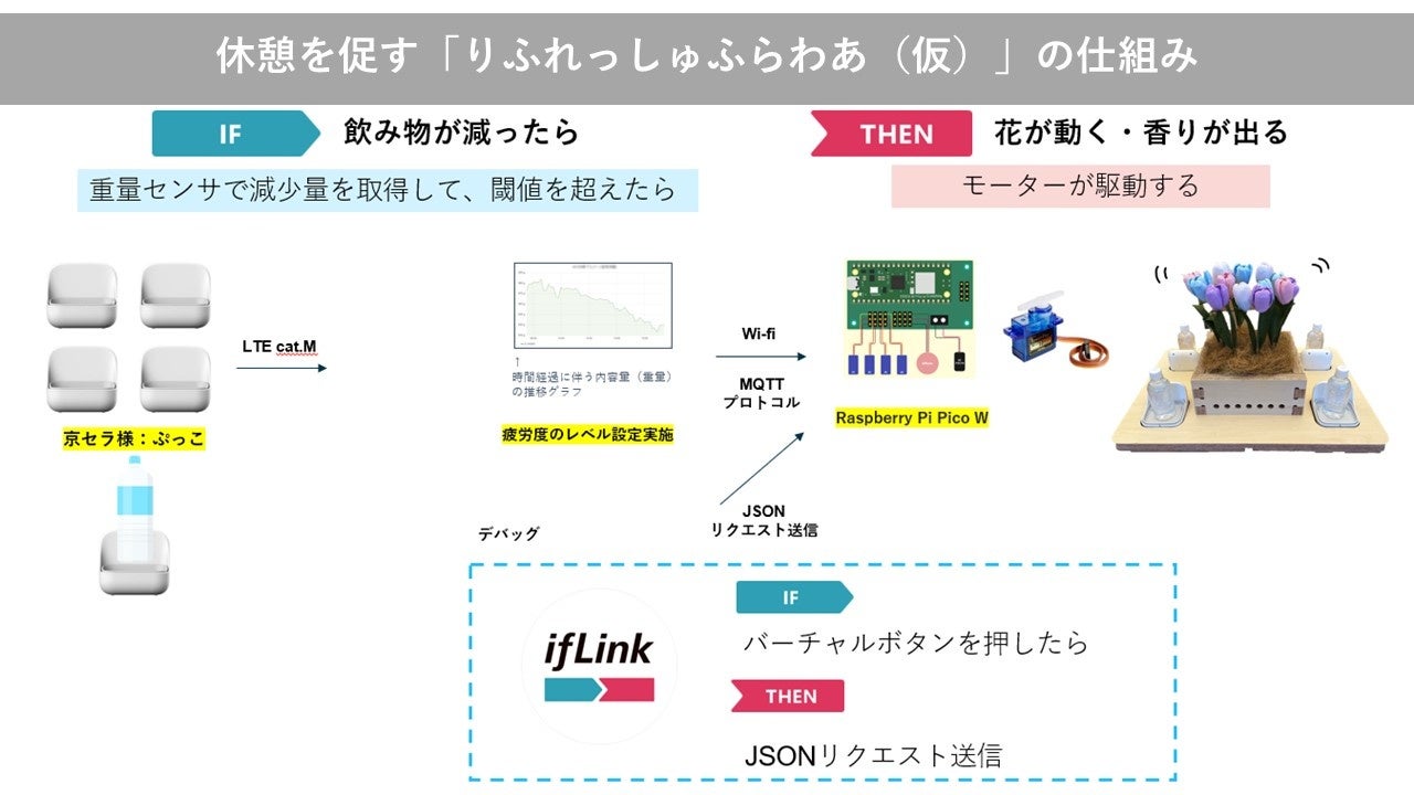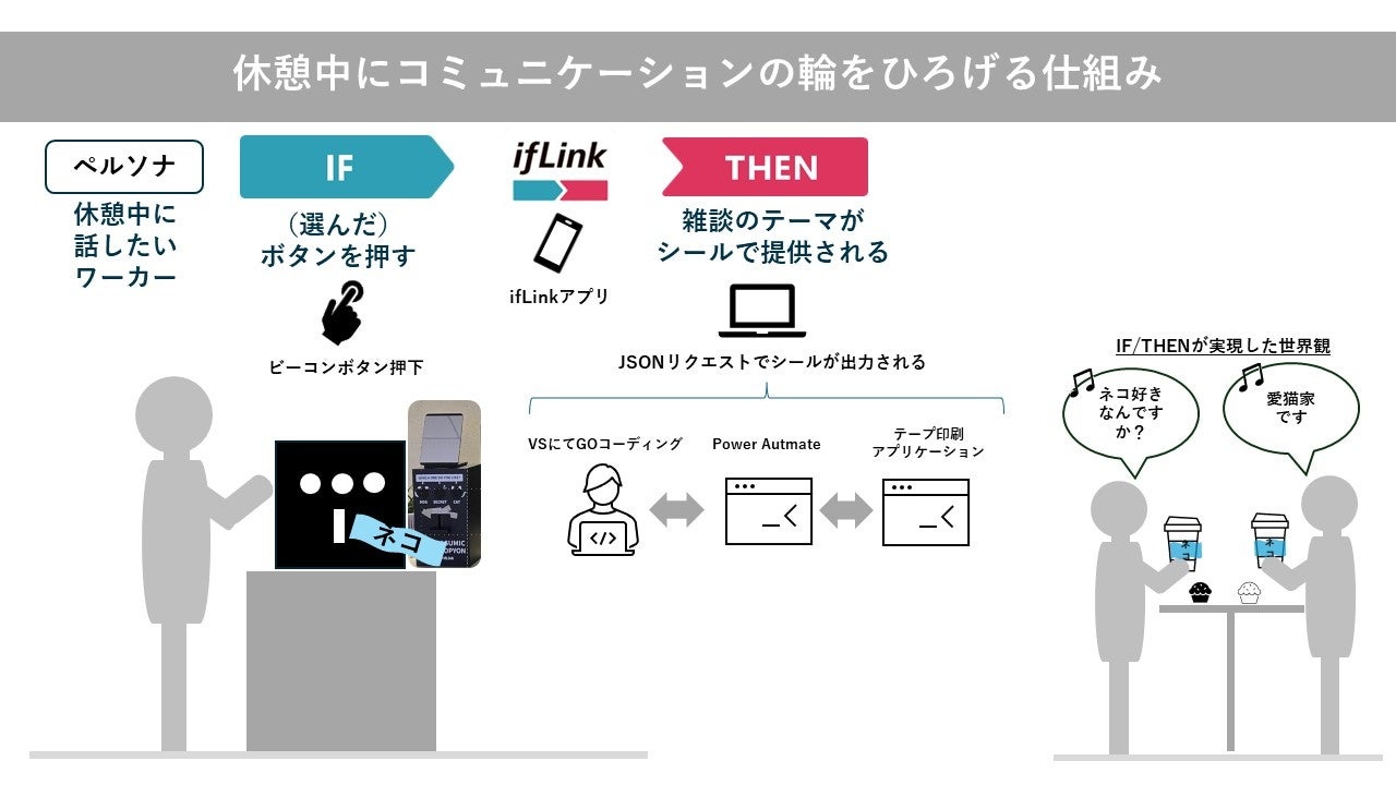 この度、2023年の主な活動として、ifLinkオープンコミュニティの個社プロジェクトである「ビストロifLink」を当社リードで始動しました。「働く」におけるオフィスでの「休憩」をIoTでアップデートすることを目的に、コミュニティ内で当社以外のメンバーも有志で募り、2つの共創プロジェクトを立ち上げ、アイデアを具現化するプロトタイプを試作しました。