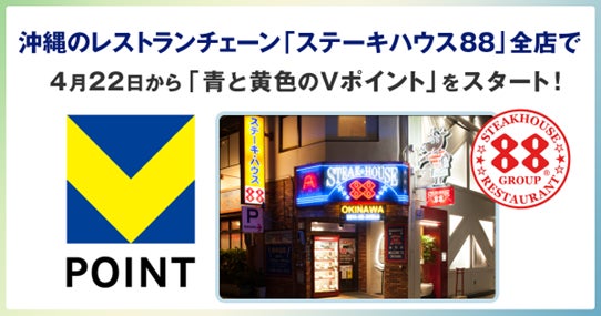 4月22日から沖縄のレストランチェーン「ステーキハウス88」全店で「青と黄色のVポイント」を開始