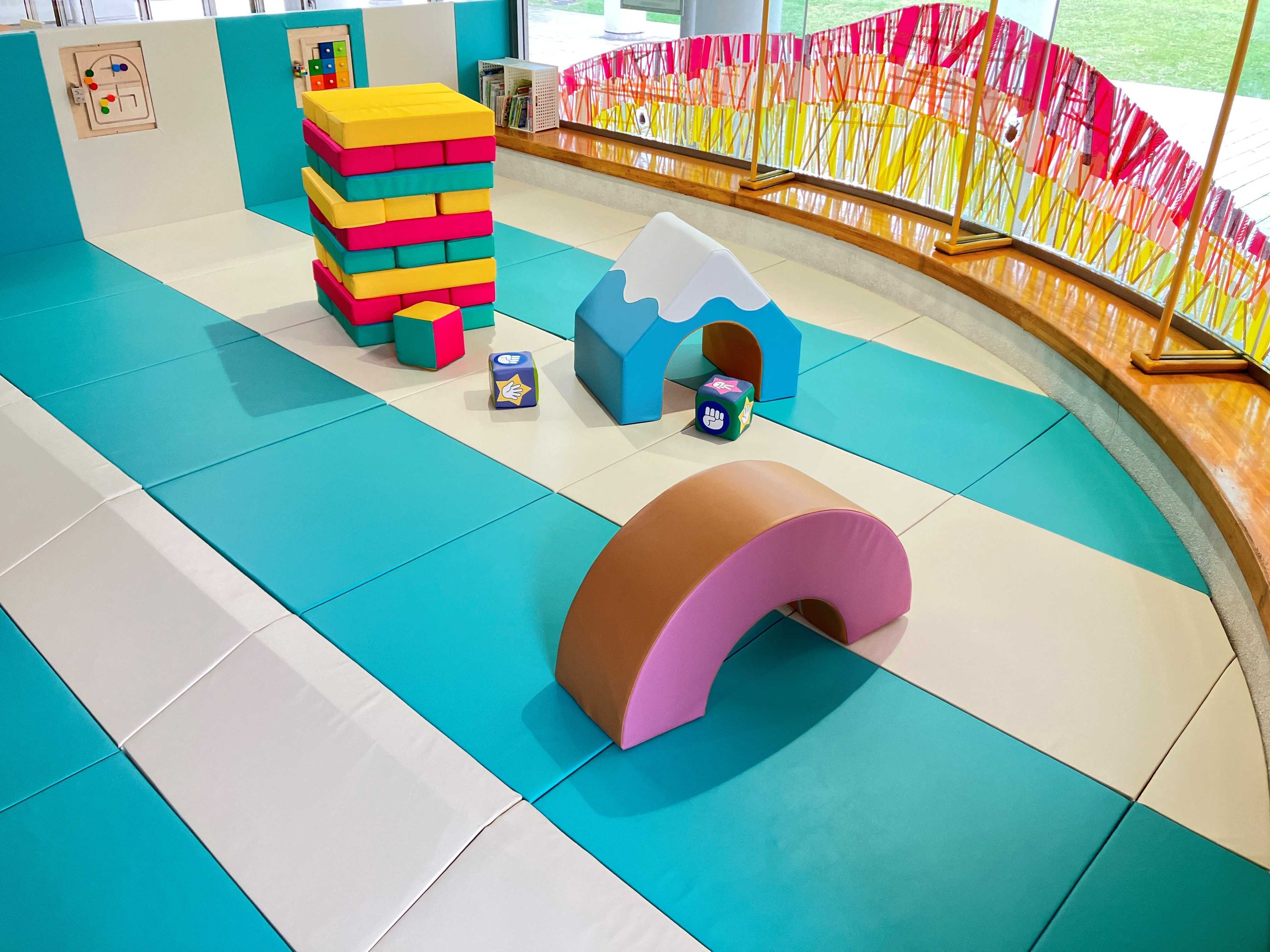 地域の利用者からの声を受け、2025年10月21日(火)に清水ケ丘公園 体育館内の「キッズコーナー」をリニューアルしました!リニューアルオープンにあわせて、子どもたちと共にマスキングアートで窓の装飾を行うイベントも開催し、安心して遊べる遊具など、明るく楽しい空間となりました。