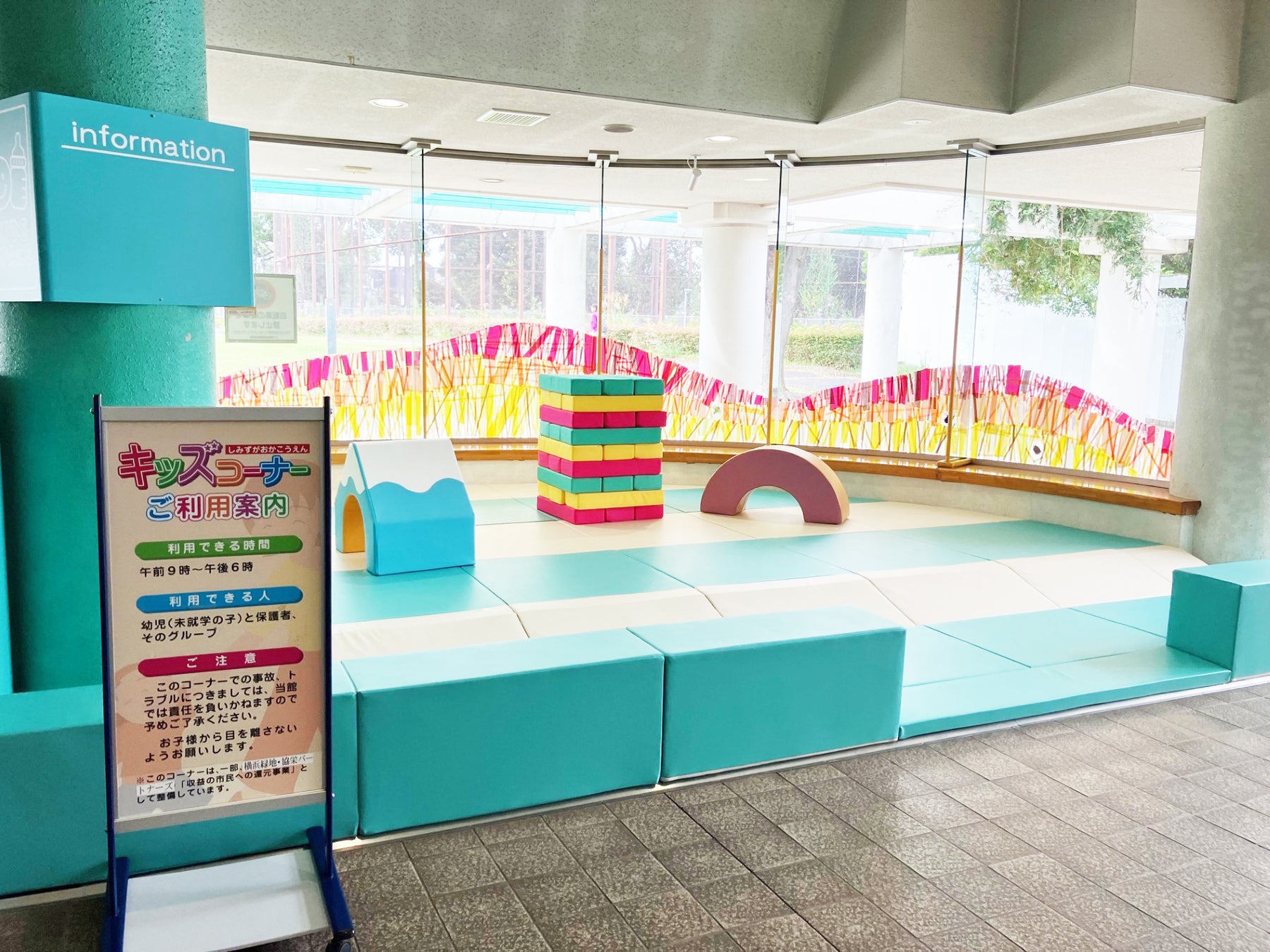 この「キッズコーナー」は公園の指定管理者である横浜緑地・協栄パートナーズが、公園内で実施したイベントや物販など収益事業の一部を還元し、市民の皆さまがより使いやすい公園づくりを目指して実施したものです。また、子ども連れで楽しめるイベントなども定期的に開催し、公園として横浜市が進める子育て支援の取り組み推進にも寄与してまいります。