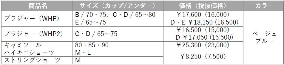 ブラジャー(WHP)は、コンパクトな円形のワイヤーで自然で丸いバストにメイク。ブラジャー(WHP2)はL字ワイヤーでナチュラルなシルエットに整えます。