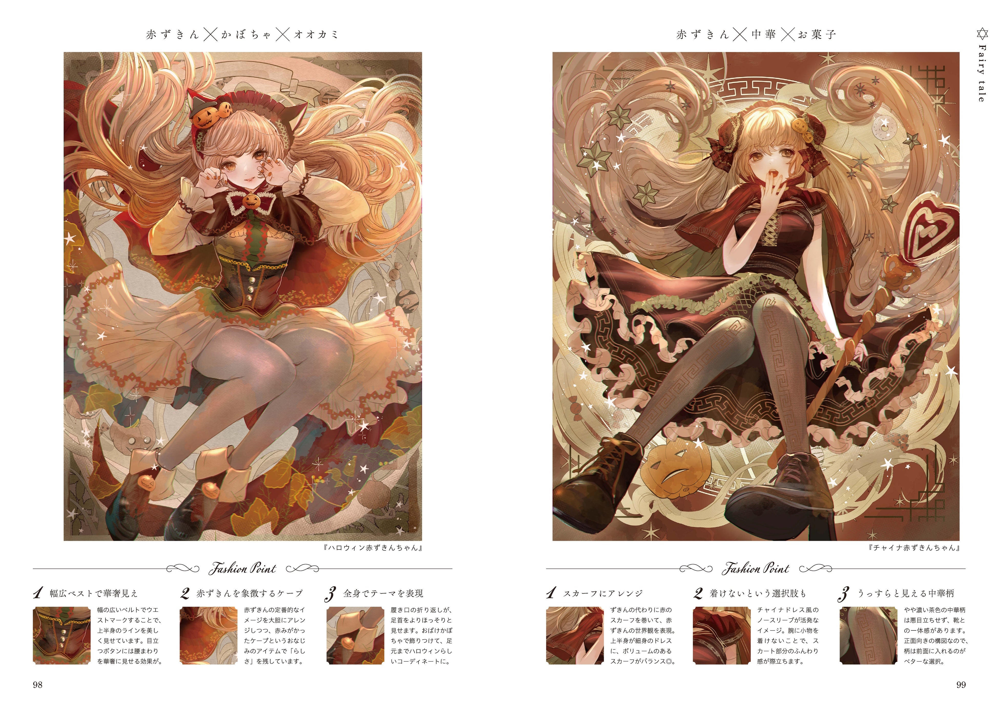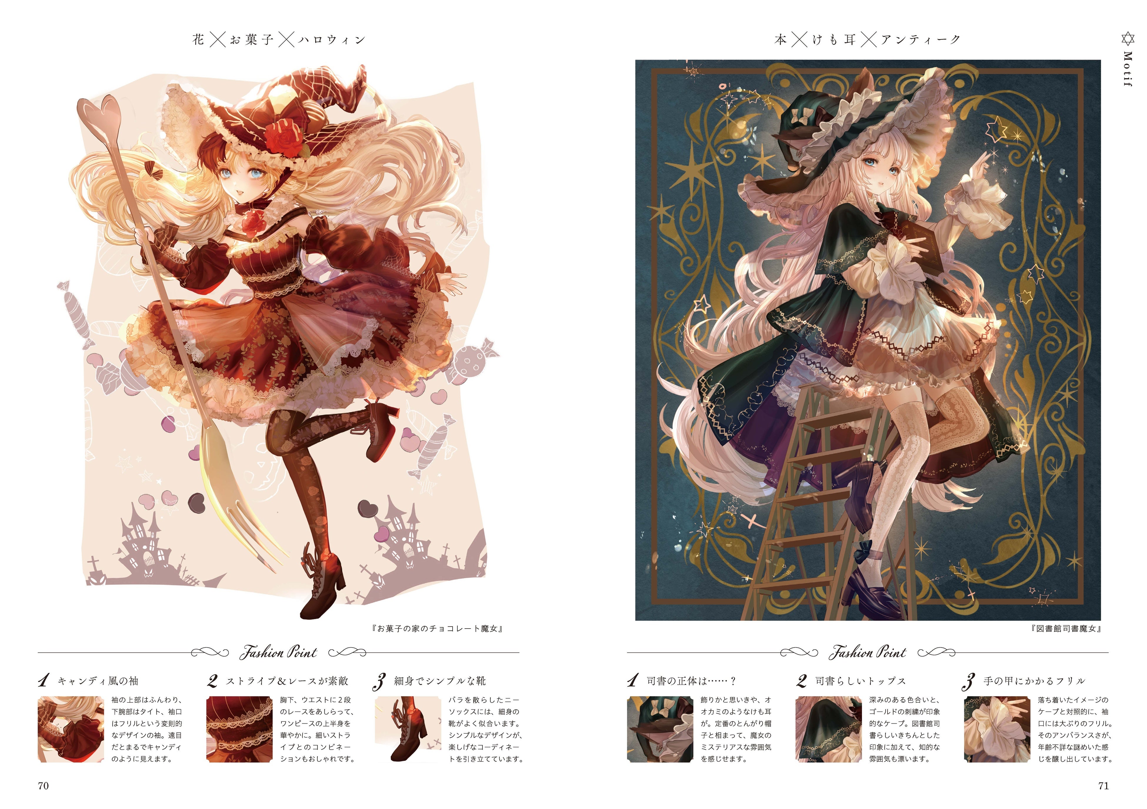 繊細で壮大なイラストで描くコスチュームデザインは90種掲載!「メルヘンファンタジーの世界」をテーマにした女の子の衣装のアイデアが詰まったコーディネート集です。パーツや背景、素材など、ディテールのヒントもいっぱい!