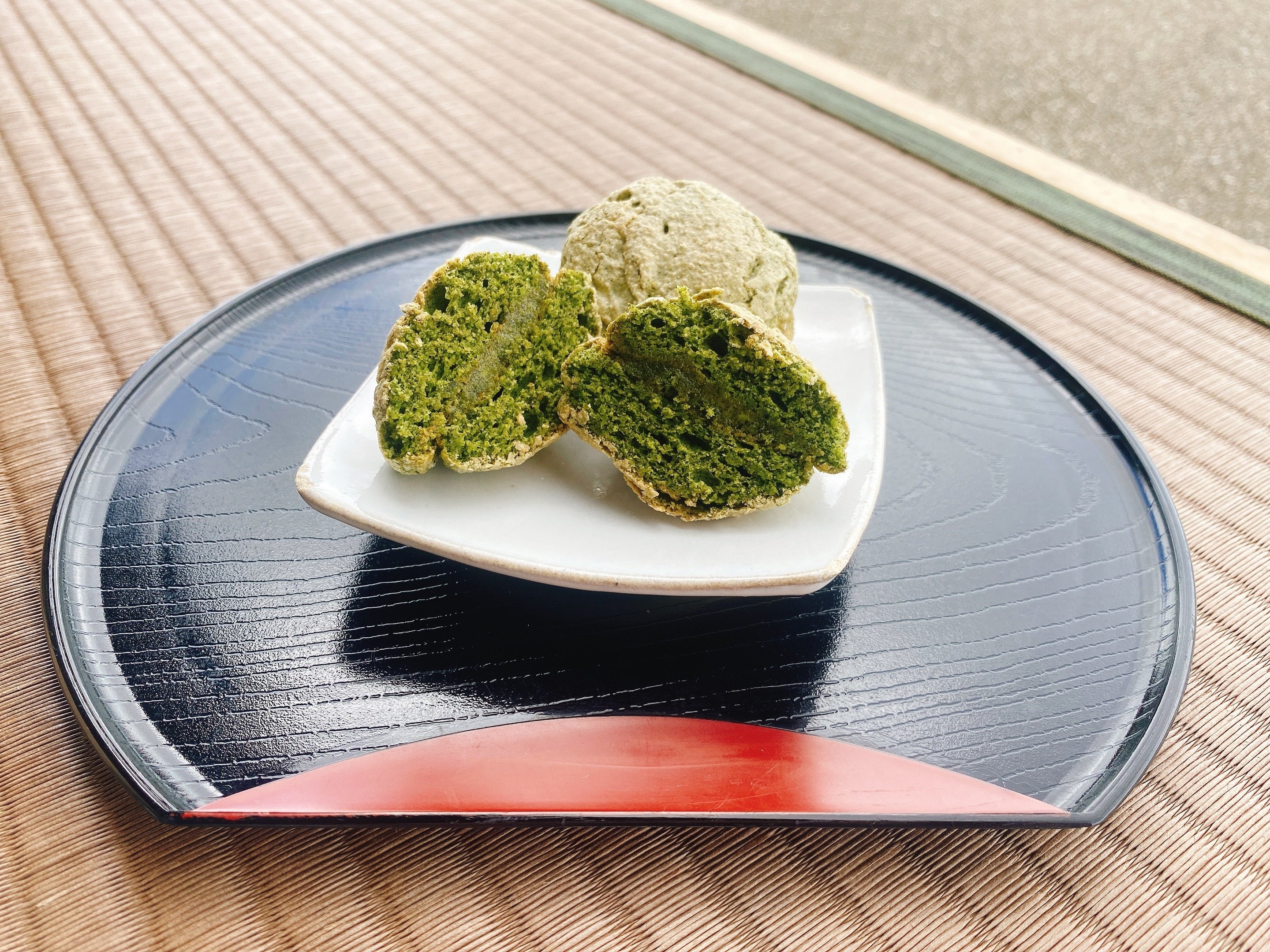 ①『緑茶のダックワーズ』(御菓子司 龍月堂)