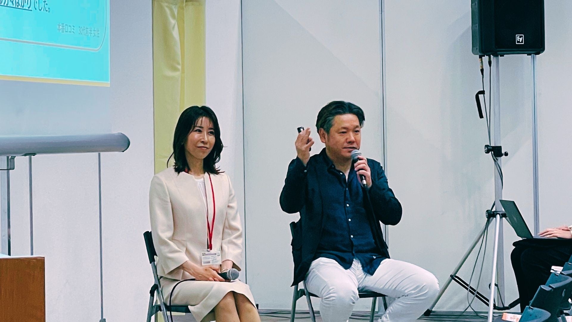 2025年6月に開催されたブライダル産業フェアのセミナーでは、このオーダーメイド接客・営業スキル向上プログラム開始について発表し、弊社代表・貝瀬が、トルチュリール代表の玉井美輪氏とセミナーに登壇しました。