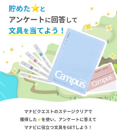 ■賞品および当選数:Aコース.★10個使用で文具1,000円相当、Bコース.★20個使用で文具2,000円相当、Cコース.★30個使用で文具3,000円相当を、抽選で各コース100名様、合計300名様にプレゼント