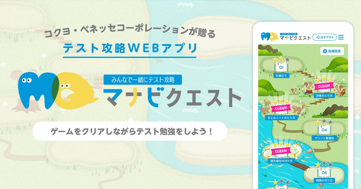 コクヨ株式会社(本社:大阪市/社長:黒田 英邦)は、株式会社ベネッセコーポレーション(本社:岡山市/代表取締役社長:小林 仁)と共同で、ゲーミフィケーションを取り入れたステージクリア型のテスト攻略コンテンツ「マナビクエスト」を、8月25日(木)から公開します。
