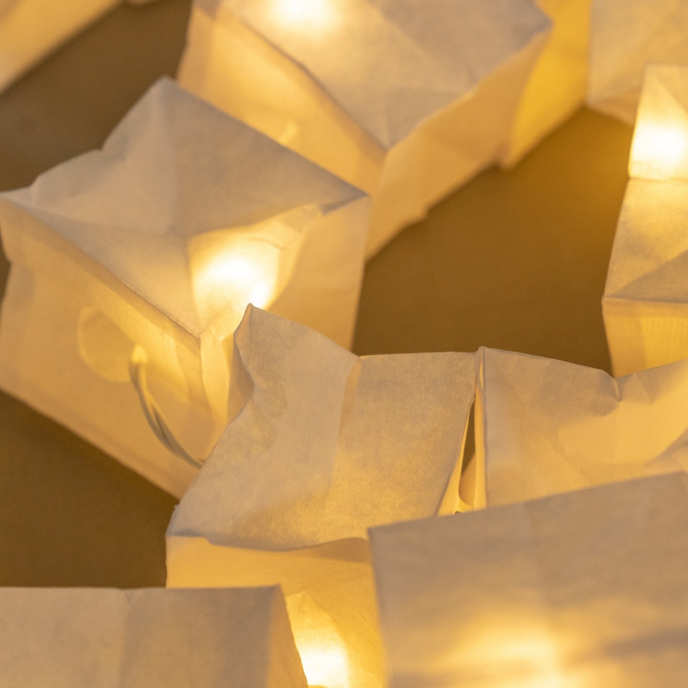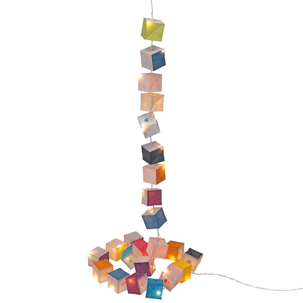サイズ:コード全長約452cm(キューブ照明部分約250cm)、 紙キューブ6×6×6cm、電球25個