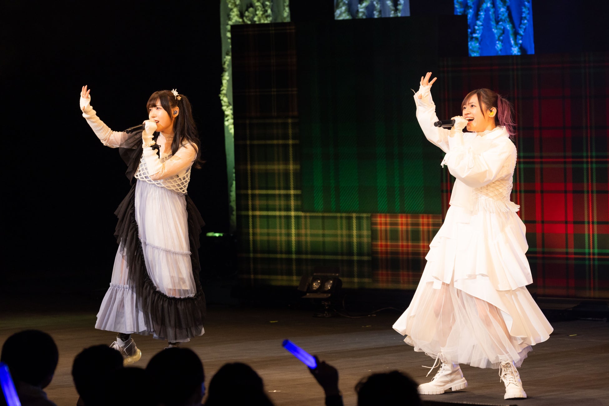 そして、カバーソングブロック後にステージ上が暗転。再びスポットライトが当たったそこには、スペシャルゲストの赤尾ひかるさん。まずは2人の共演作品『こみっくがーるず』のオープニングテーマ「Memories」をTVアニメが放映された2018年以来、約7年ぶりに披露。萌田 薫子役の赤尾さん、勝木 翼役の高橋さんが作中そのままの息のあったパフォーマンスで会場を盛り上げます。