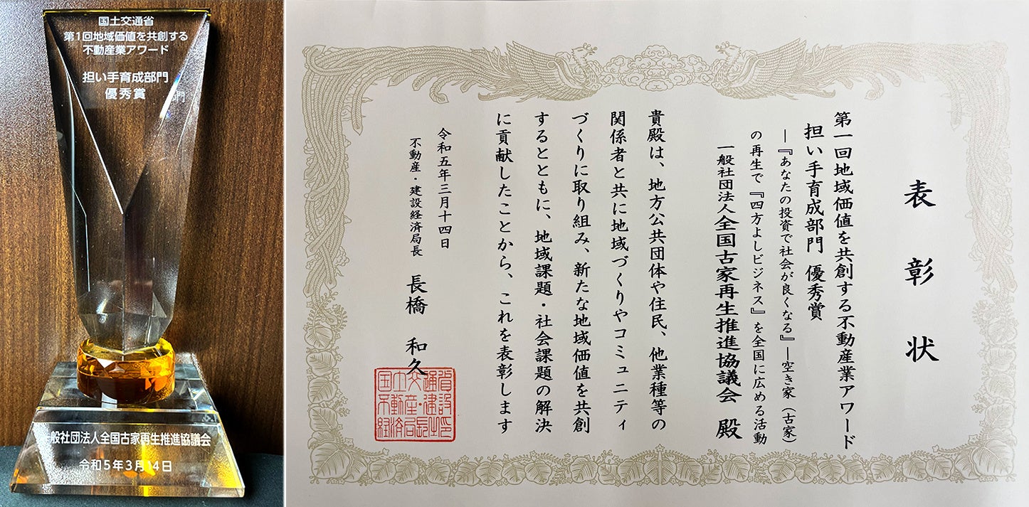 「地域価値を共創する不動産業アワード(不動産・建設経済局長賞)」の担い手育成部門優秀賞の受賞
