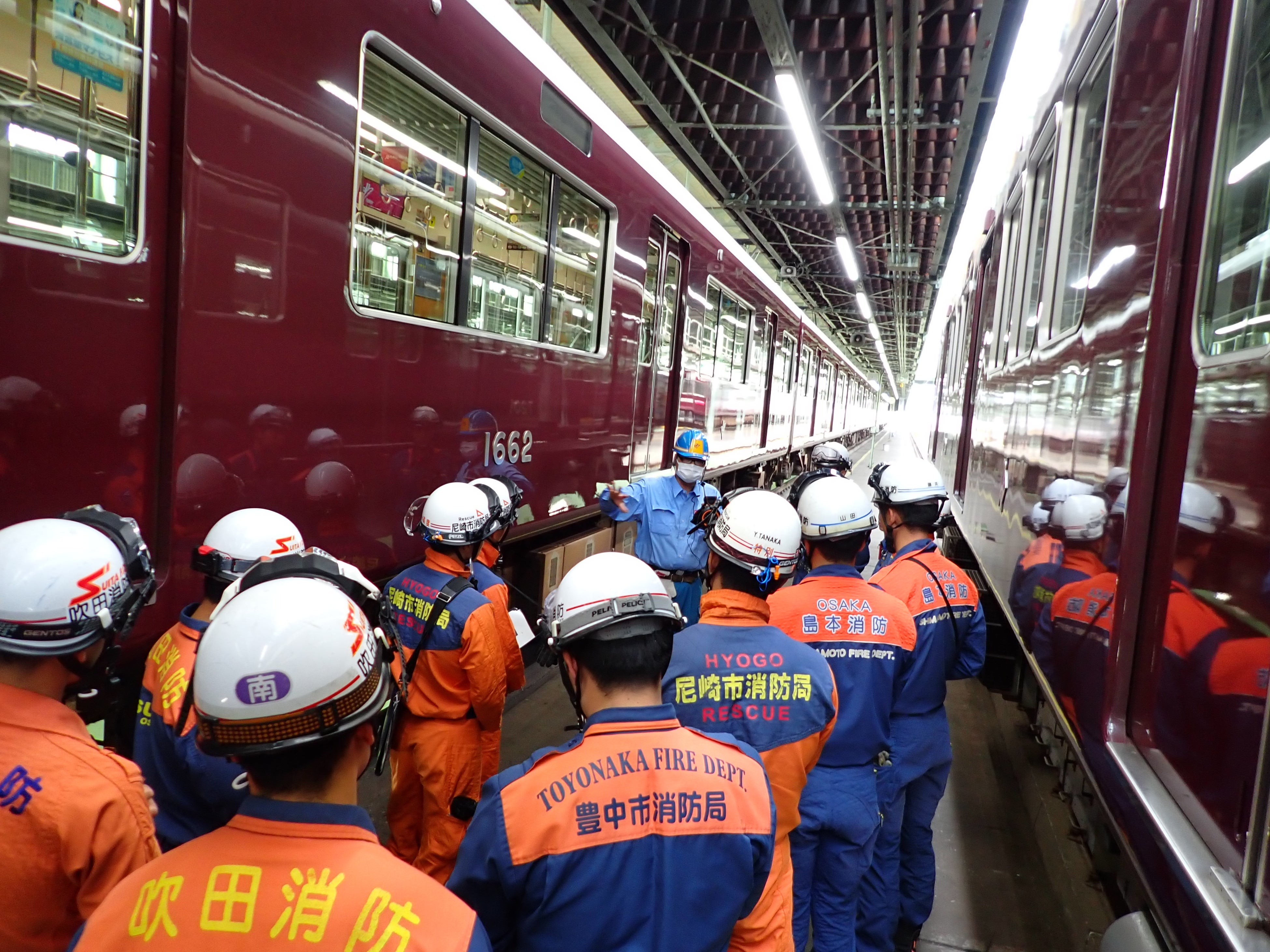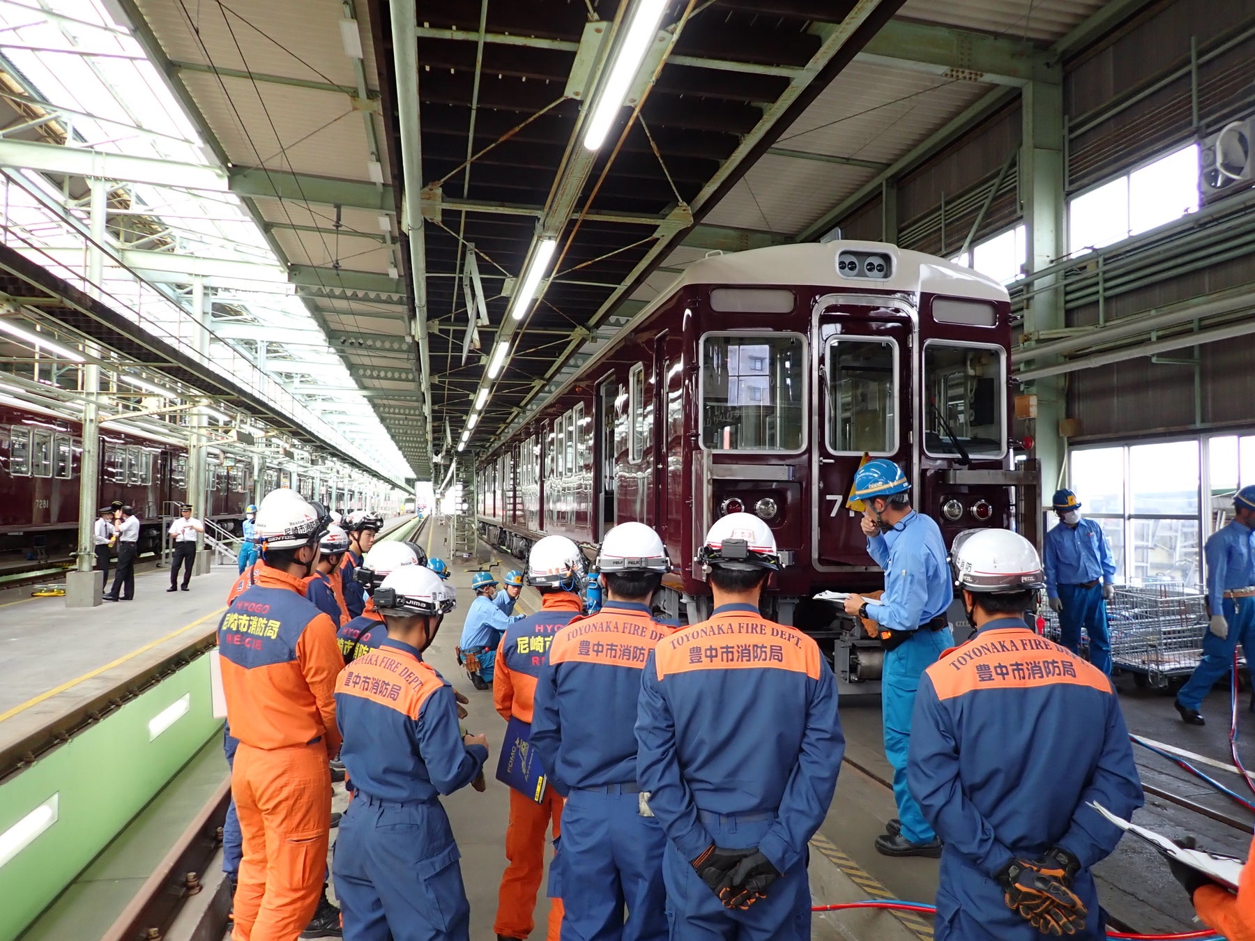 豊中市消防局は、阪急電鉄株式会社や同電鉄沿線にある11市2町の消防本部(局)と合同で「鉄道災害時の安全対策研修会(※)」を実施しました。