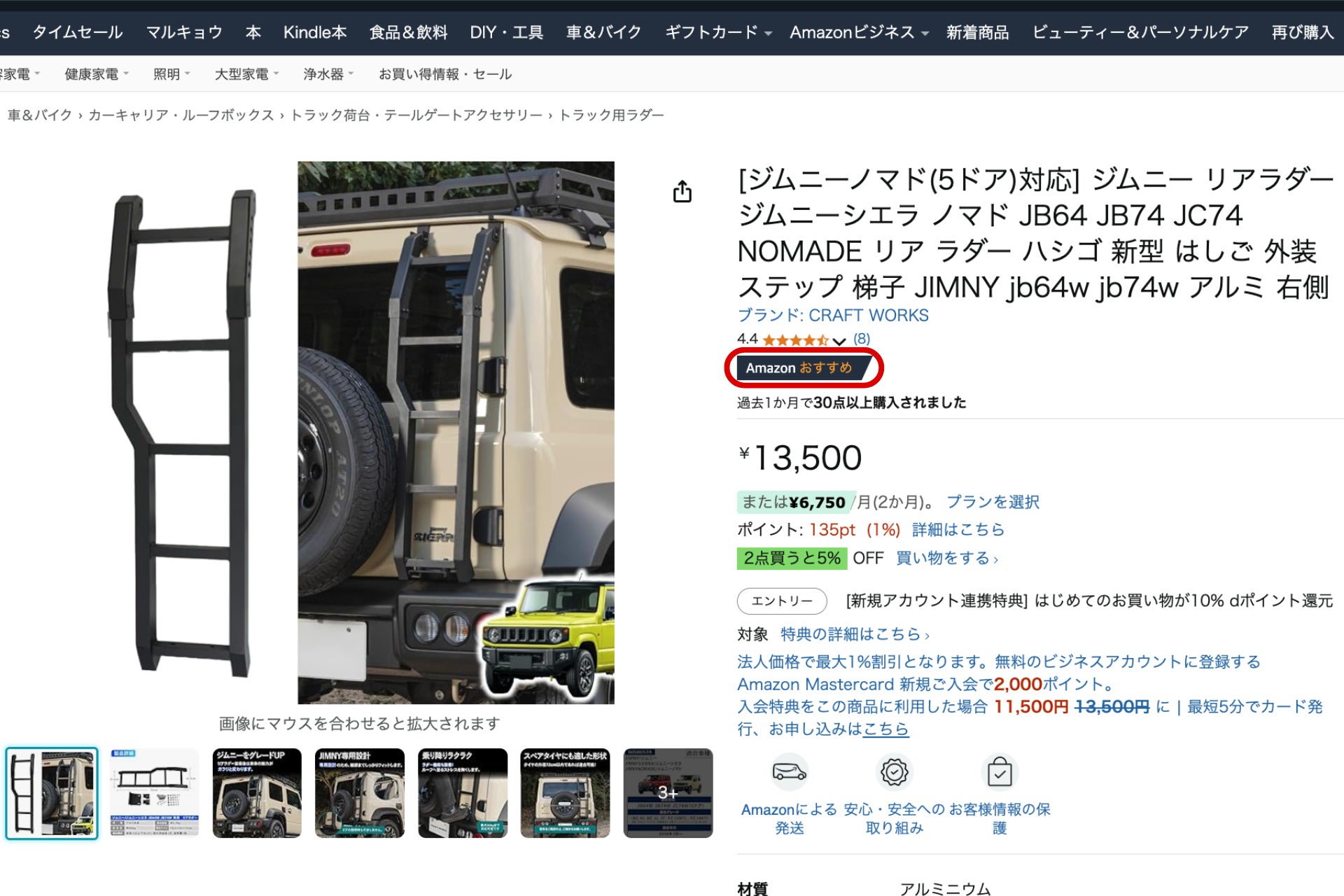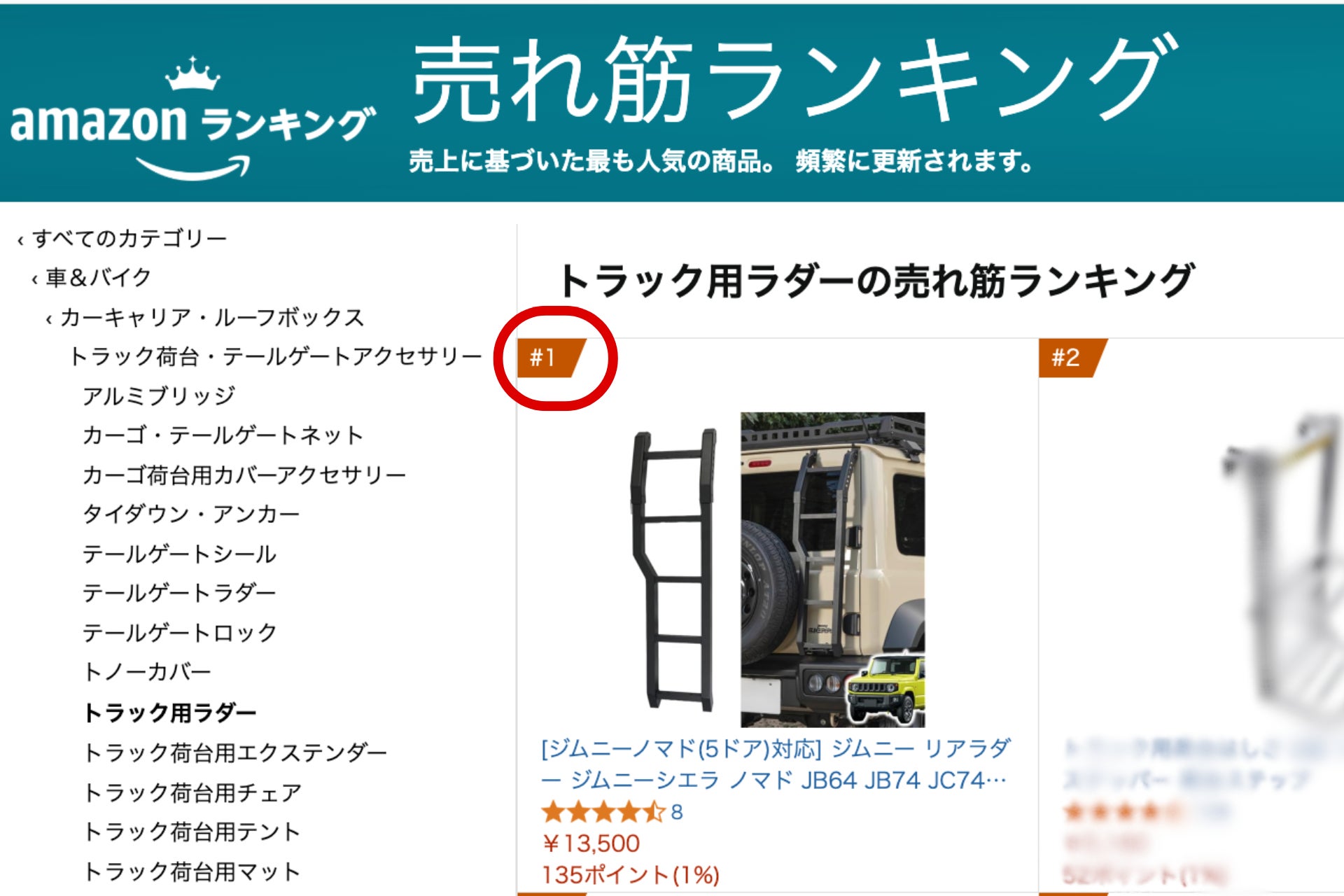 ジムニー愛好者必見!「ジムニー リアラダー」がAmazon トラック用ラダーのジャンルでベストセラーを獲得しました。[ジムニー・シエラ・ノマド対応]
